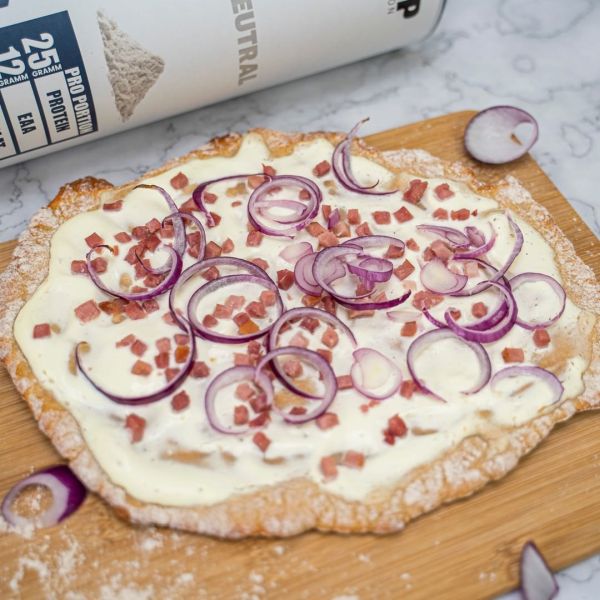 Der Flammkuchen ist nicht nur ein Gericht für kalte Tage, sondern auch eine tolle Alternative zur Pizza und ist auch im Sommer ein super Soulfood. Die Zubereitung ist einfacher als man denkt und geht wirklich sehr schnell. Wir zeigen dir, wie du einen proteinreichen Flammkuchen zauberst, der nicht nur gut schmeckt, sondern auch Low Carb ist.