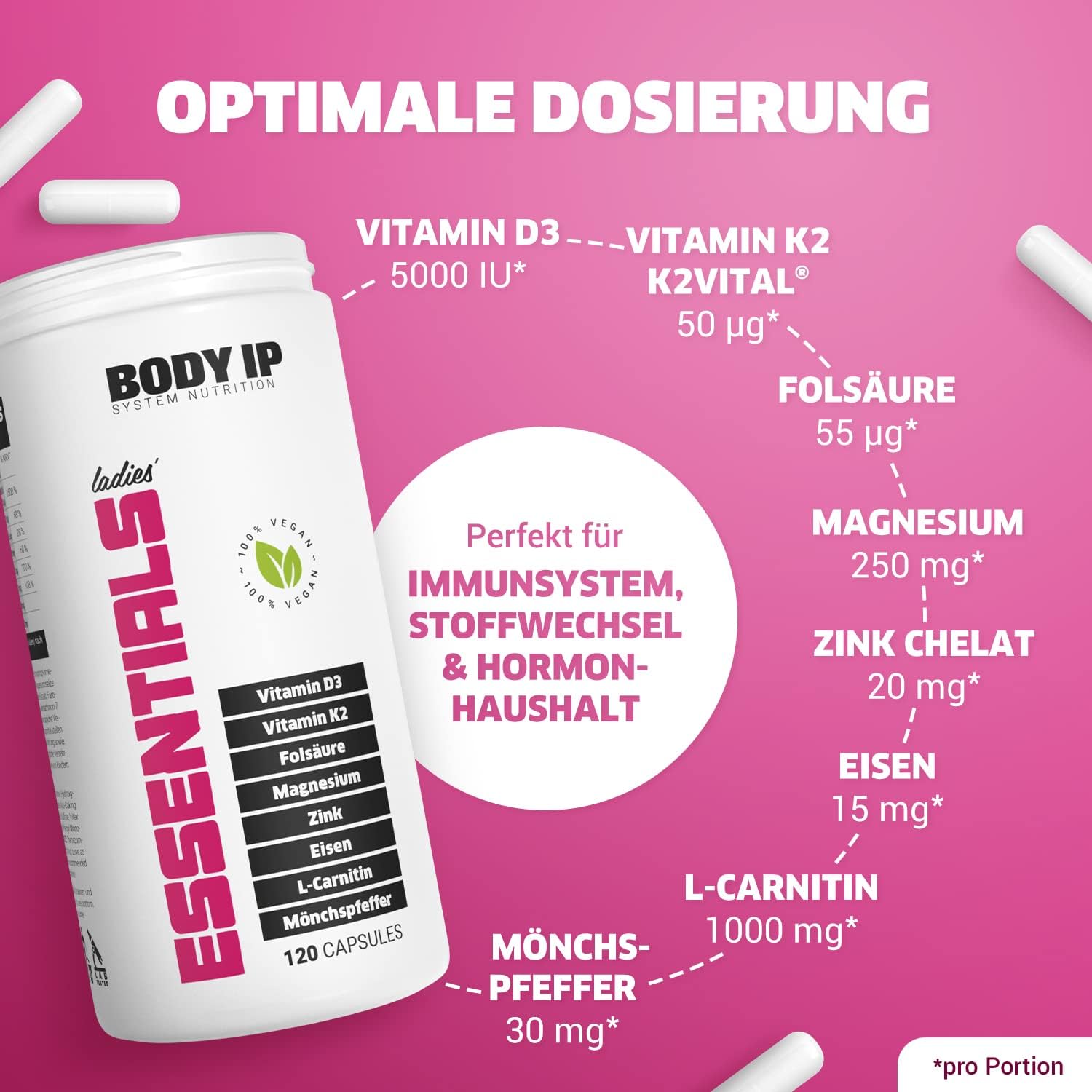 Die Perfect Ladies' Essentials sind eine einzigartige Kombination von Vitaminen, Mineralstoffen und Inhaltsstoffen, die speziell für Frauen konzipiert wurden, die zusätzlich zur Verbesserung ihrer Gesundheit, ihrer Fitness und ihrer Leistung eine eigens auf sie abgestimmte Unterstützung hinsichtlich typischer PMS Symptomatik bedürfen. Speziell hier sollen die Lady Essentials für Unterstützung sorgen.