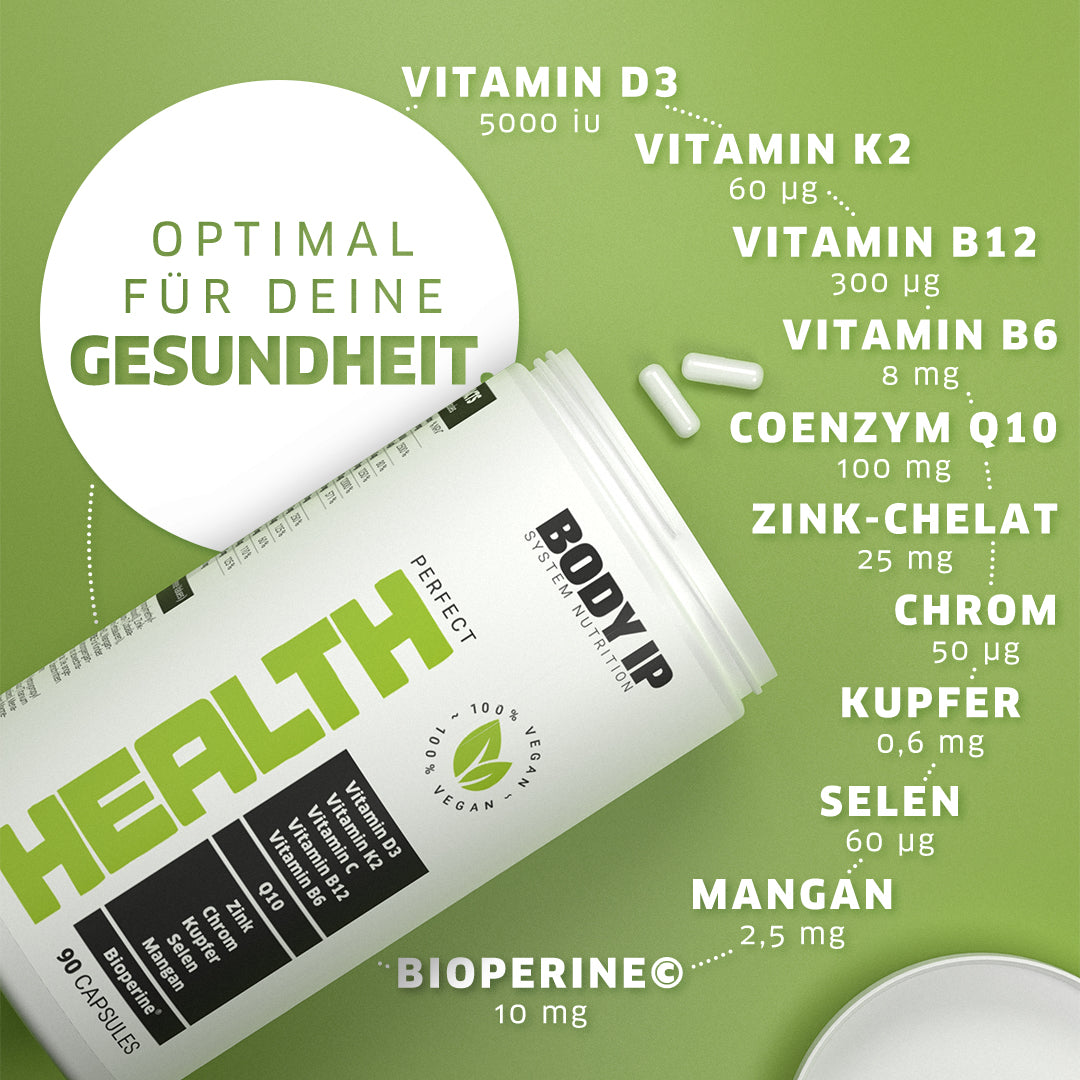Perfect Health ist eine einzigartige Kombination aus den wichtigsten und fundamentalsten Vitaminen und Mineralstoffen, die für die Gesundheit, ein funktionierendes und geschütztes Immunsystem sowie für das allgemeine Wohlbefinden essenziell sind.